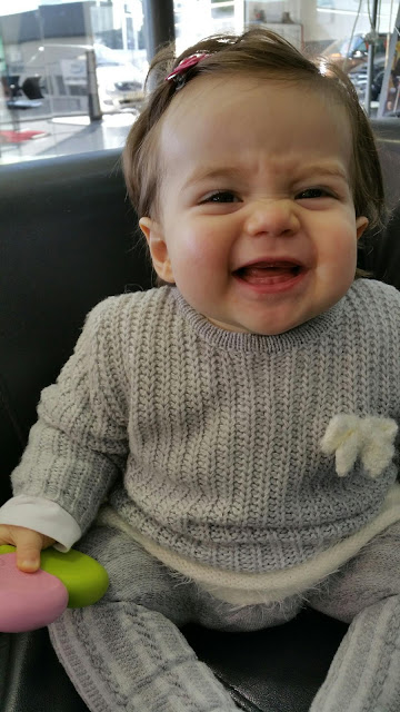 Ooohhh que ternurinha! O meu ria-se assim também, e depois de romperem os primeiros dentes (os 2 da frente em baixo) ainda projetava mais a gengiva de baixo para fora.