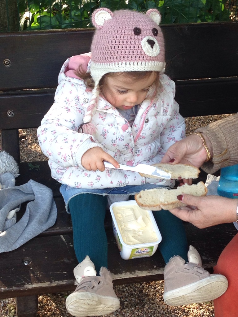 Toda contente por ter, afinal, levado a fralda extra fiquei um pouco aflita por não saber onde lhe trocar a fralda. Não queria mudá-la em frente a toda a gente, mais para não incomodar pessoas a lanchar e isso.